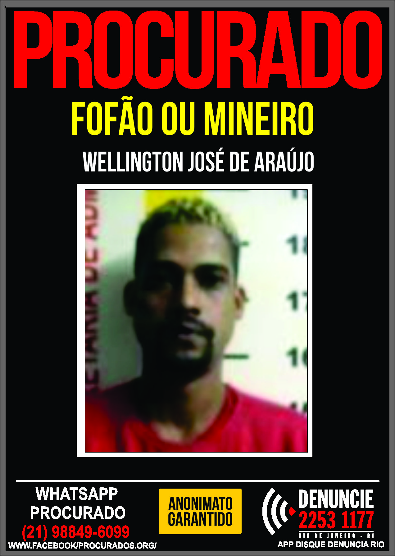 Wellington José de Araújo, de 32 anos, traficante oriundo da cidade de Muriaé, em Minas Gerais, estaria se escondendo no Complexo da Penha, Zona Norte do Rio.