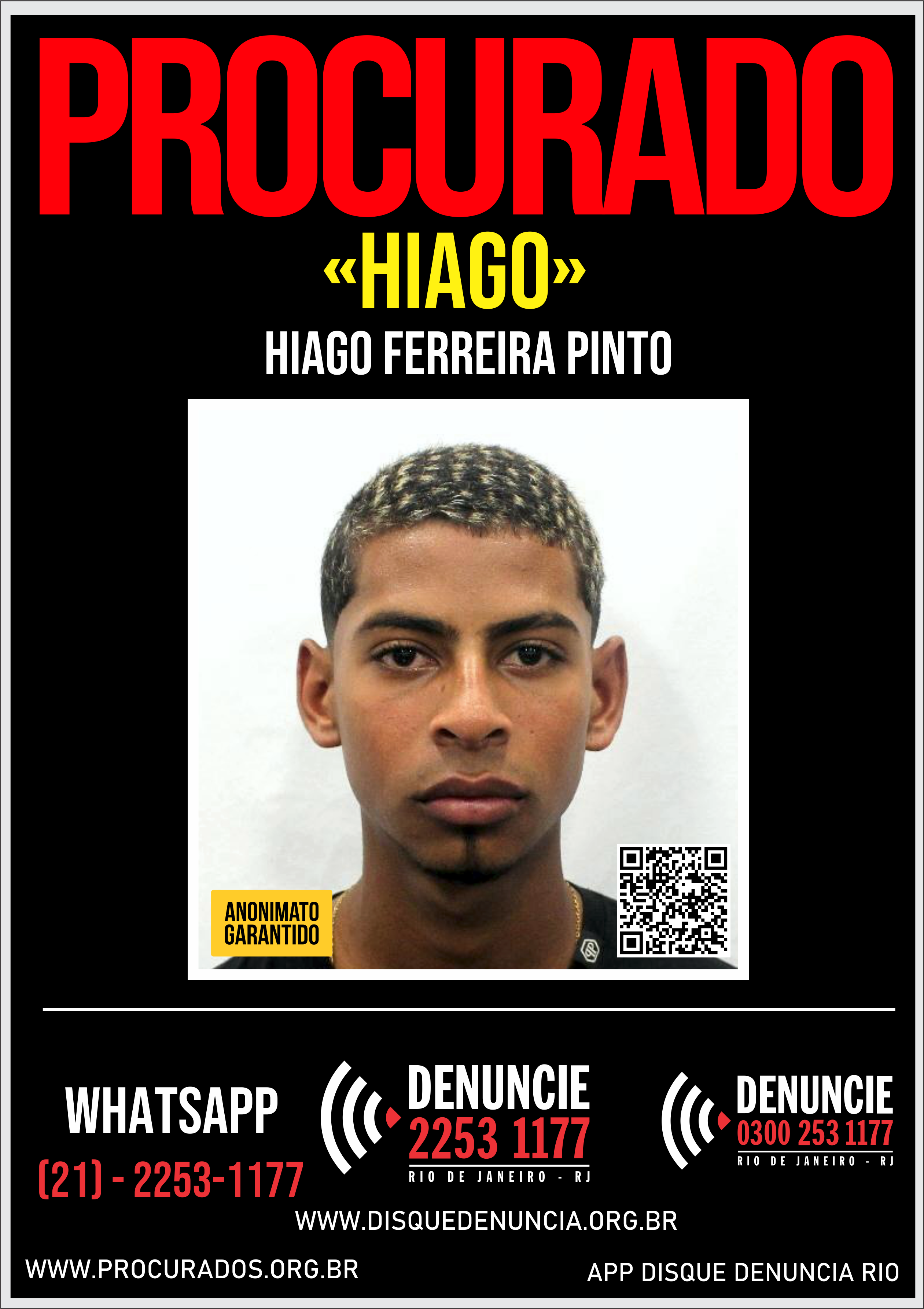 O Disque Denúncia (2253-1177), divulga, nesta quarta-feira (26), um cartaz para auxiliar nas investigações no Núcleo de Investigações de Morte de Agentes de Segurança da Delegacia de Homicídios da Capital (DHC), a fim de obter informações que levem à localização e prisão de Caio Felipe Ferreira da Cruz, vulgo ?Reizin?, de 22 anos; Carlos Antônio Gomes Júnior, vulgo Braddock?, de 23; Fabiano da Silva Souza, de 23 e Hiago Ferreira Pinto, de 22. Os quatro são apontados como autores no crime de Latrocínio (Roubo Seguido de Morte), que vitimou o Policial Penal Henry dos Santos Oliveira, de 51 anos.