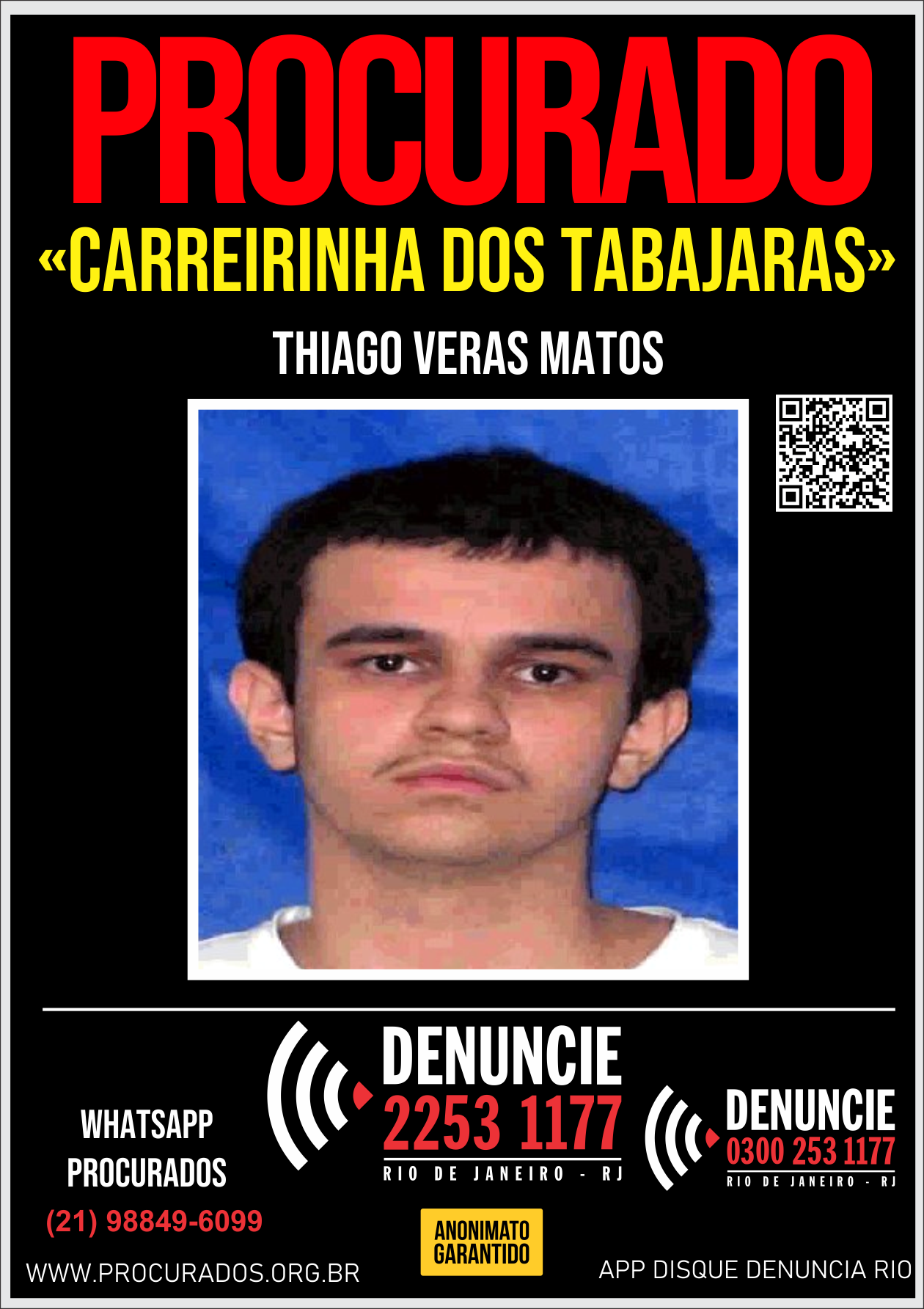 Thiago Veras Matos é ligado a facção Comando Vermelho e faz parte do tráfico de drogas que age na Ladeira dos Tabajaras, em Copacabana, Zona Sul do Rio.