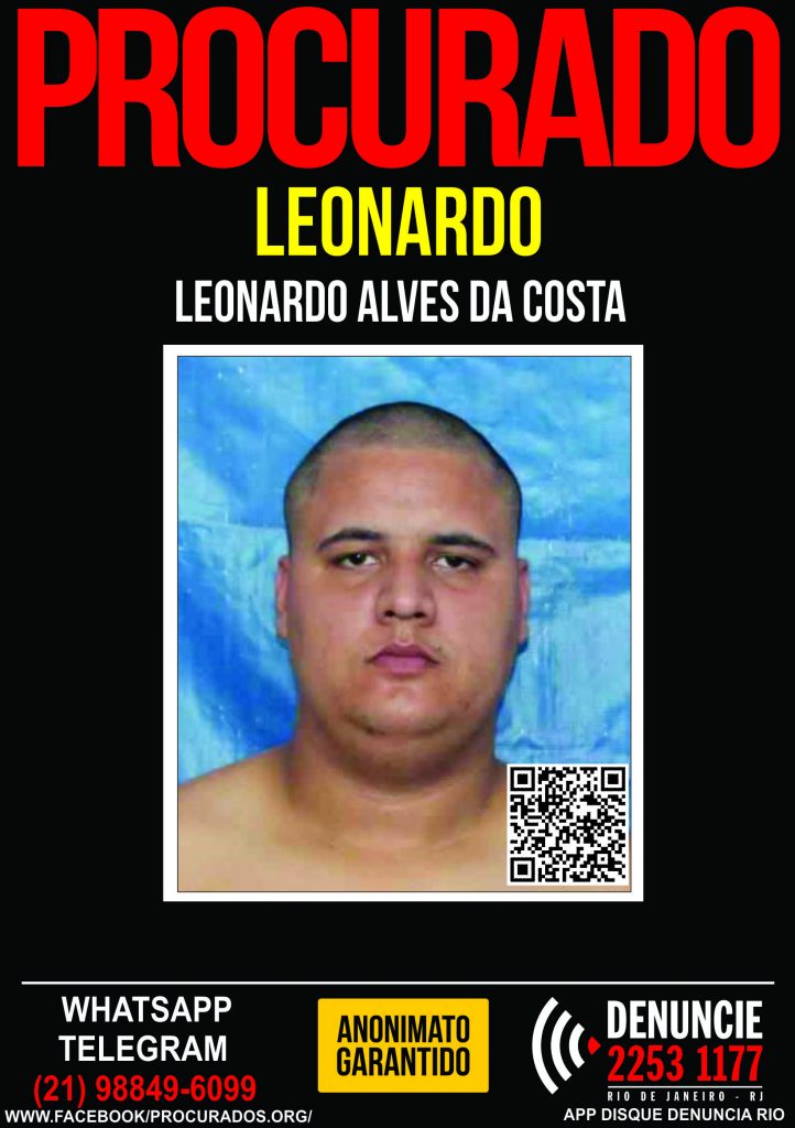 Leonardo Alves da Costa, está foragido do Sistema penitenciário, após conseguir da Justiça o benefício de indulto do Dia das Mães. De acordo com o Sistema Penitenciário, ele está foragido desde o dia 27/04/2018.